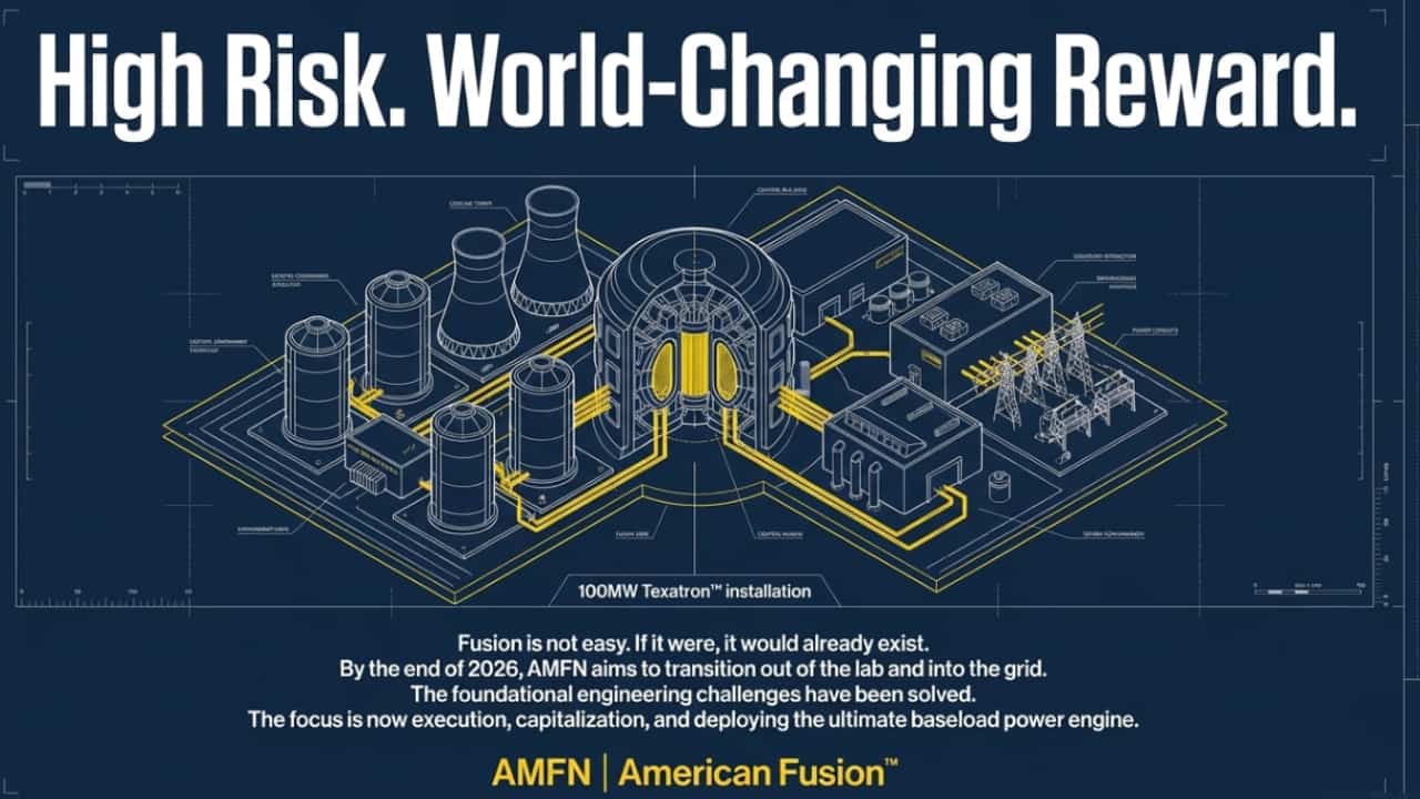 American Fusion™ OTC: AMFN discusses how its aneutronic fusion energy platform Texatron™ could disrupt the nuclear power industry.