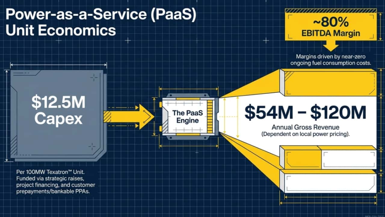 • 100MW → ~$54M–$120M annual gross revenue (depending on pricing)
